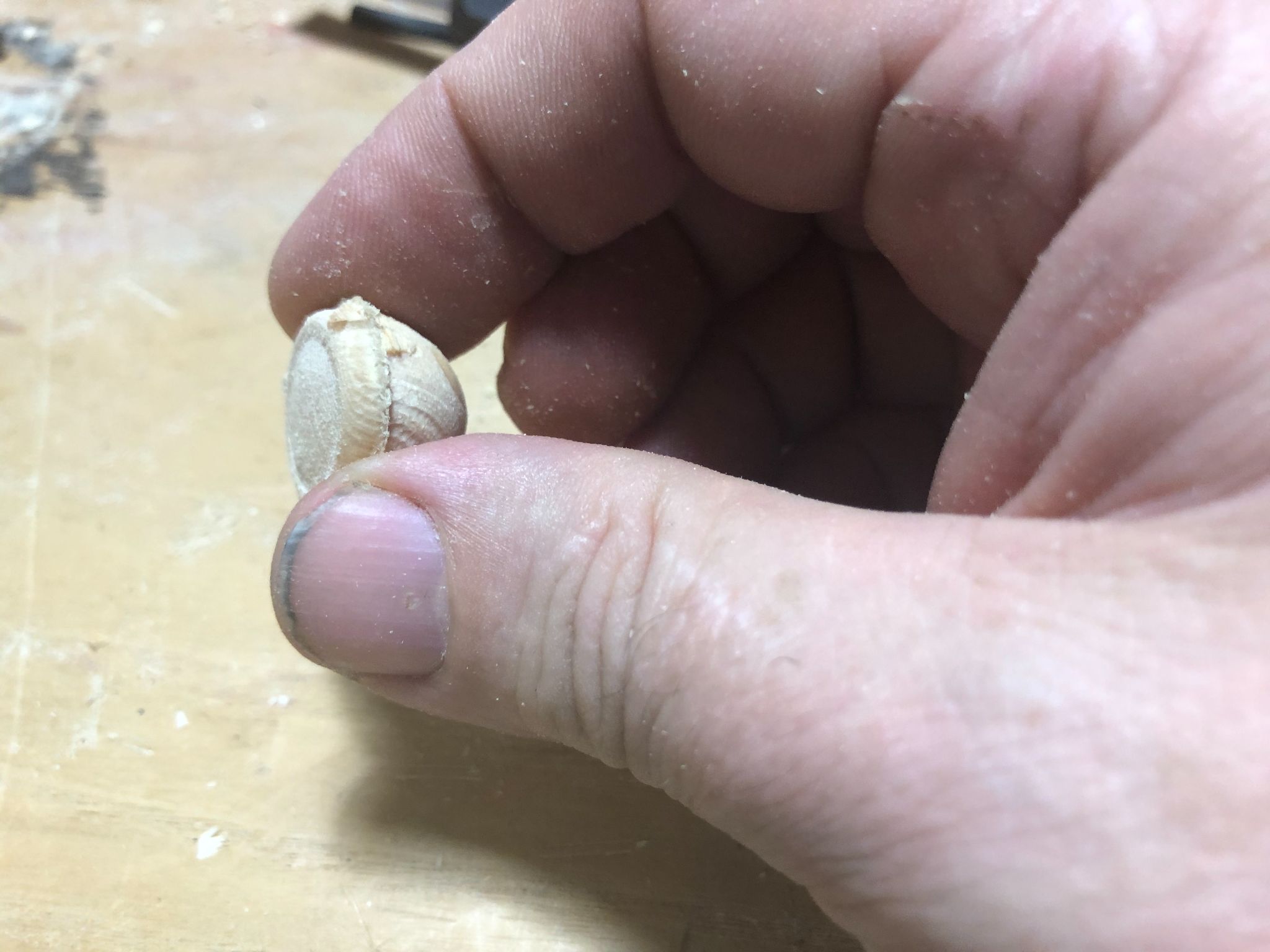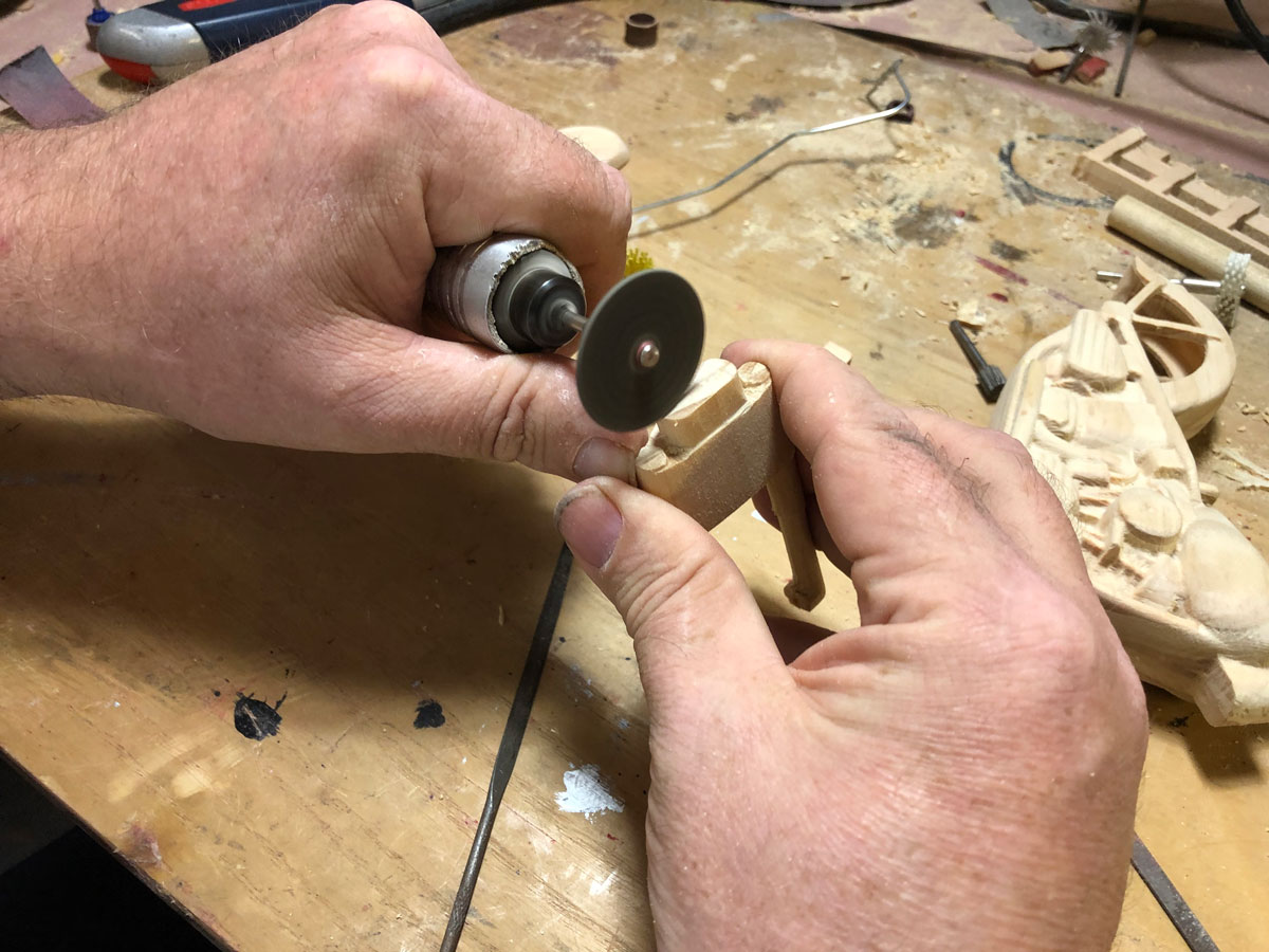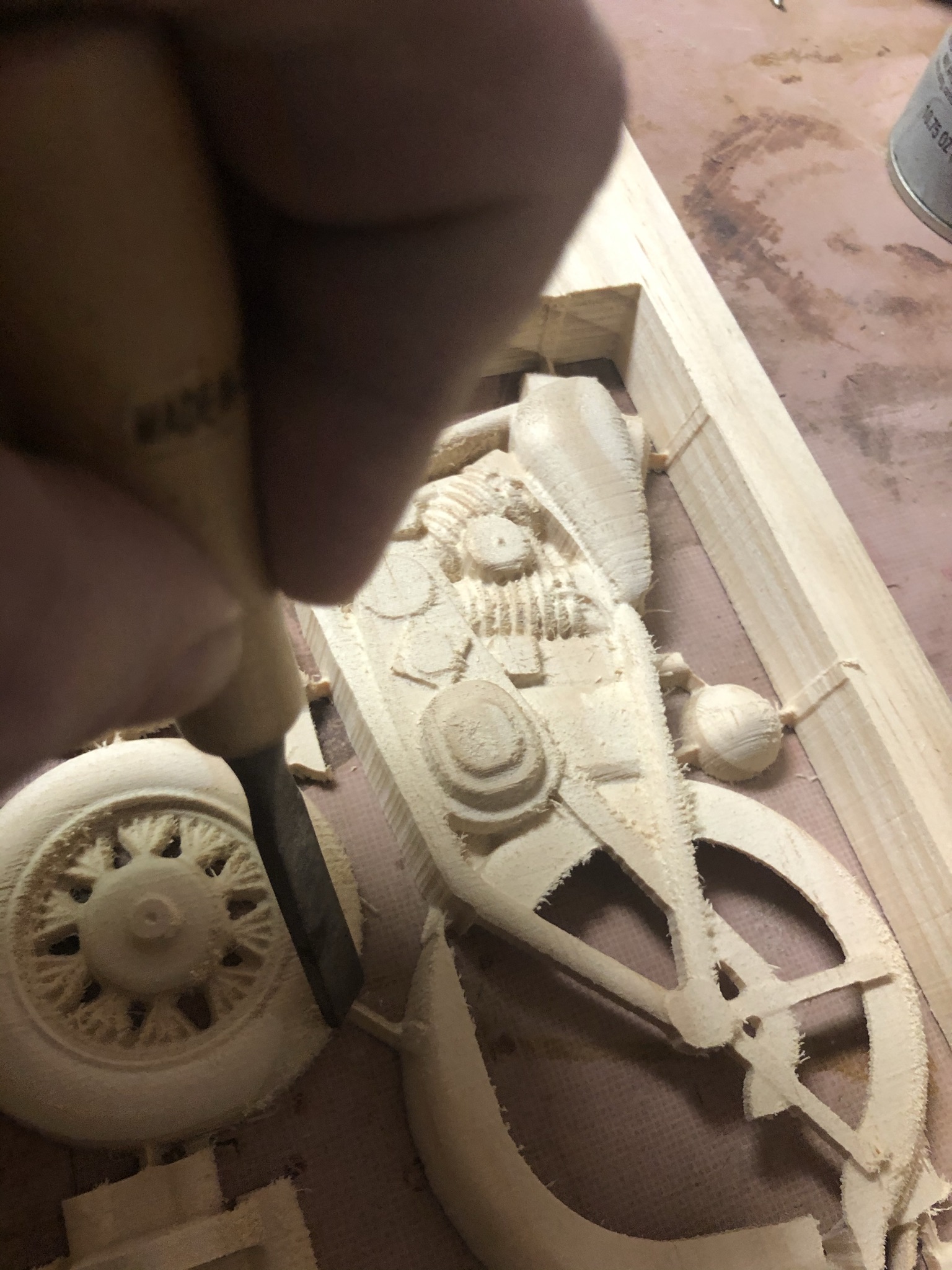 Now that the project is carved, the parts were freed by cutting the tabs using a sharp chisel.