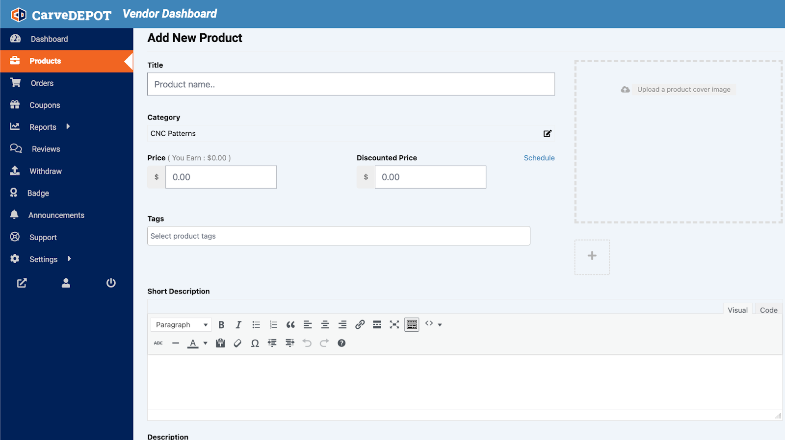 Adding Products To Your CarveDEPOT Store