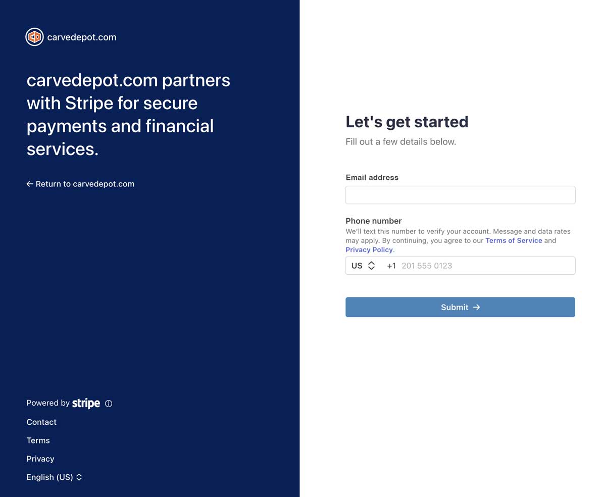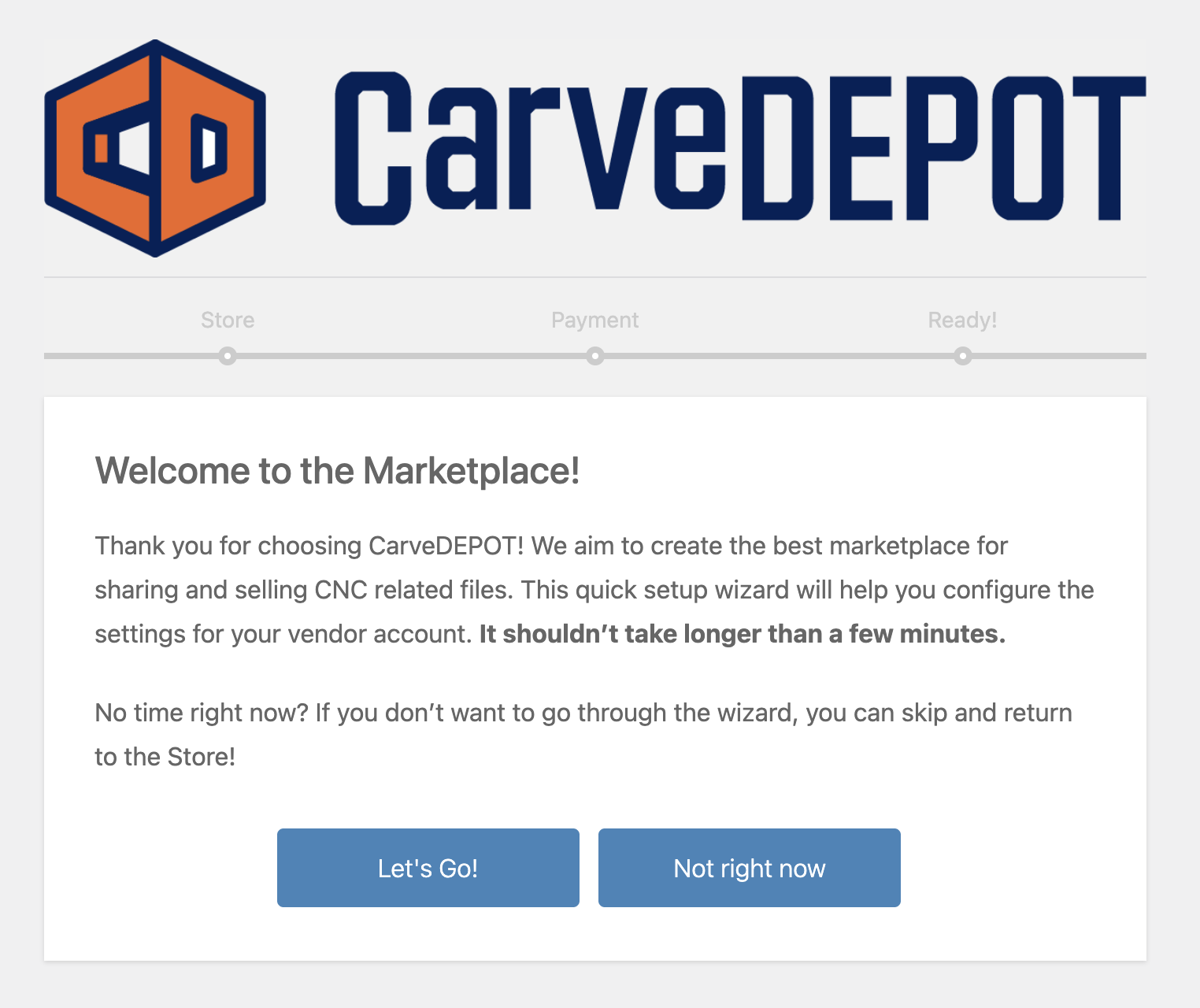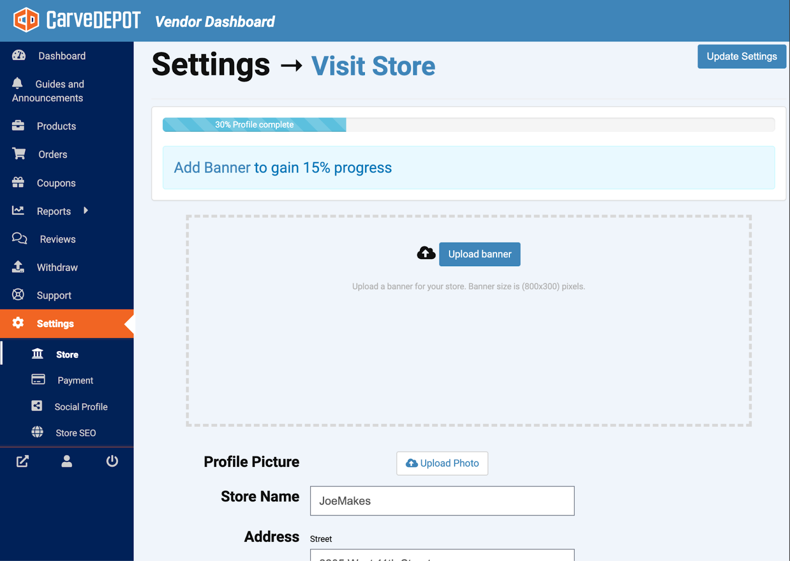 In the CarveDEPOT Vendor Dashboard, follow the instructions to complete your store setup.