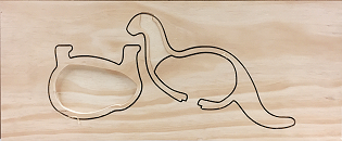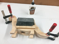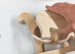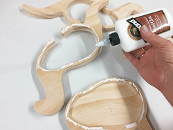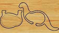Lightly sand the flat parts of the sections so “fuzzies” won’t interfere with glue-up. Glue the two “A” sections together by spreading a thin, even layer of wood glue on the mating surfaces and stack align them together. Use a straight scrap board to make sure the feet and the tail are aligned. Use a pin nailer or CA glue to tack the parts in alignment. Then proceed to glue the two remaining “B” sections onto the “A” assembly. Clamp and/or weigh down until dry.