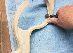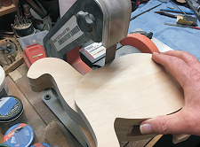 After the glue is dry, sand the sections to blend the seams. Use a coarse sandpaper to start, then move up to finer grits to yield a final, smooth finish. Sand all sharp edges slightly rounded, as well. I hand sanded with 150-grit progressively up to 220-grit, as well as using a spindle sander and small belt sander to speed up the process.