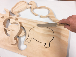 Now that the project is carved, you will need to separate all the pieces from the tabs using a sharp chisel. Label the A and B parts, then separate the parts from the boards. Sand off tabs and all undesirable toolmarks. Final sanding of the glued sections will be done after glue-up.