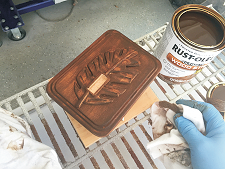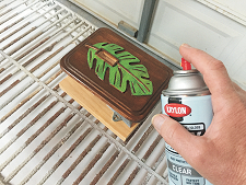 Apply stain, then two coats of Krylon clear. Next, paint the leaf.