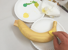 - Applied browns and black acrylic craft paints to ends of banana and dry-brushed lightly along random high points to simulate a ripening banana