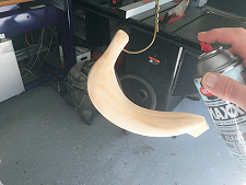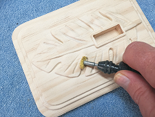 After the glue is dry, sand the banana to blend the seams of the layers. For hand and power sanding, use a coarse sandpaper to begin with then move up through successive finer grits to yield a final, smooth finish. I used 100-grit progressively up to 320-grit, plus a rotary tool with various abrasive attachments.