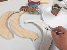 Sand the flat parts of the sections so “fuzzies” won’t interfere with glue-up. Glue the sections together by spreading a thin, even layer of wood glue on the mating surfaces and stack align them together.