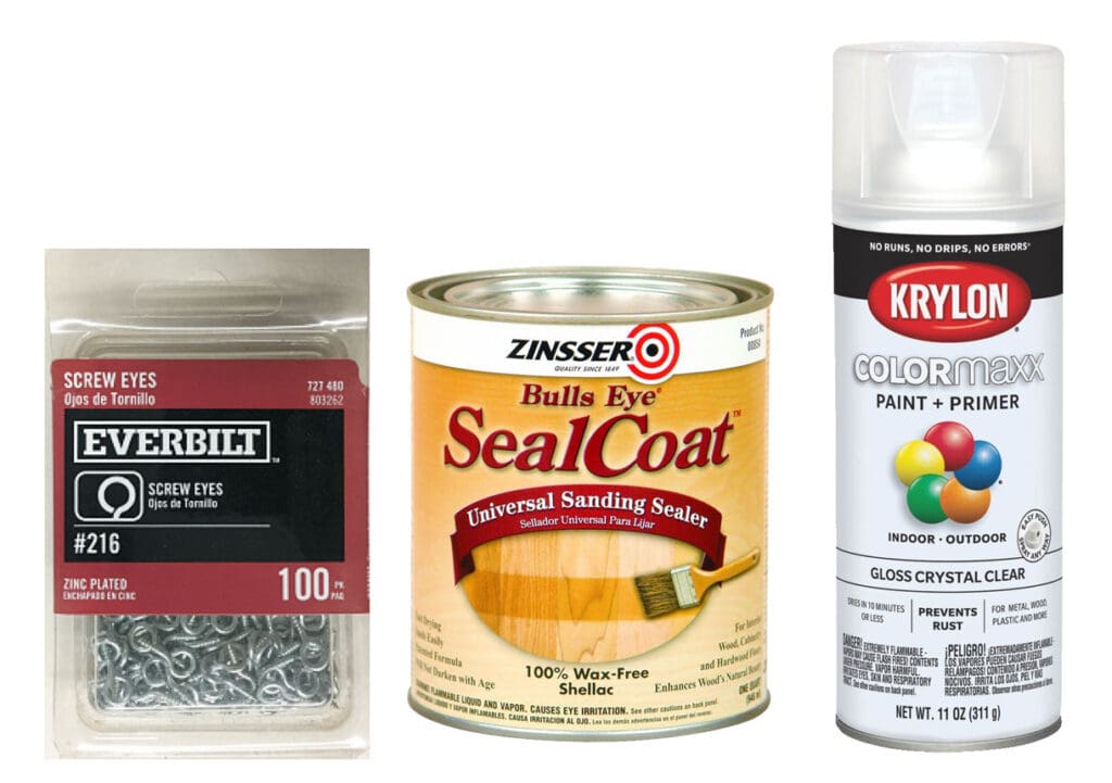 Hang the assembly by the screw eye and apply your choice of final clearcoats to complete your project. (fig. 6e)
