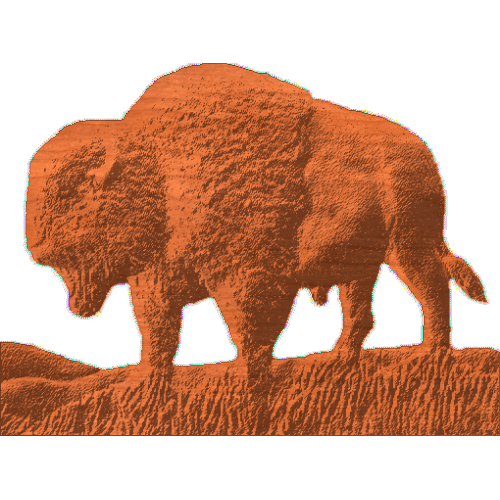 This silhouette of a grazing buffalo, created from an original sculpture, can be applied to a variety of western scenes.