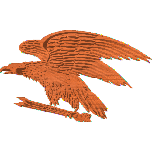 A Colonial style Eagle clutching freedom arrows. Beautifully detailed pattern with a default carving depth of .315″. Easily change the depth and height in Designer to adjust carving depth for your patriotic projects. Pattern # Eagle_Colonial_5x83_1 Original Object Dimensions: 5″x 8.3″