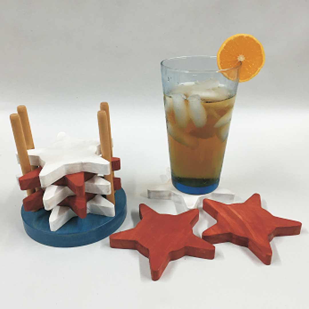 A quick-n-easy project, this set of eight Patriotic Drink Coasters and storage base shows-off their Red, White and Blue just in time for your Fourth-of-July festivities! The coasters can be stacked a variety of ways to suit your whimsy; offset array, aligned evenly, alternating white/red, etc. The entire project can be cut in less than an hour!