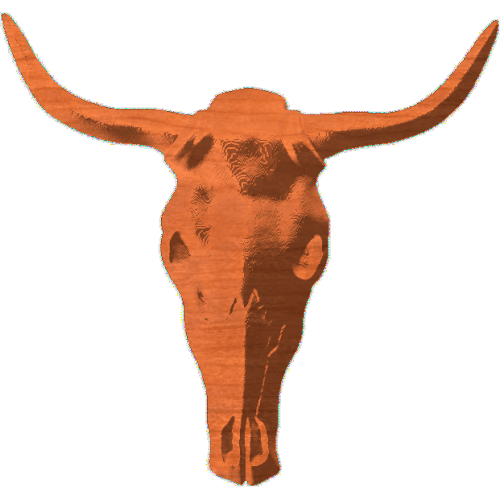 A digital relief model of a full steer skull. Great for use with desert scenes and old-west signs or plaques. Original Dimensions: 4.9"x 4.6" Default depth: 0.4" Change depth/height settings as desired for your projects.