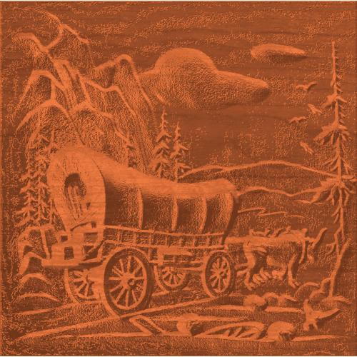 Covered Wagon on Mountain Trail.