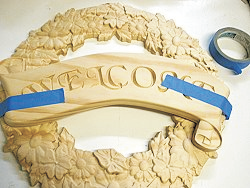 Fasten the banner onto the wreath with the screws, then remove the screws and banner before finishing as desired.