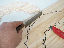 The seam will be hidden by the banner, so it doesn’t need to be perfect.You can fill any gap with glue mixed with sawdust from the carving process, if you wish.