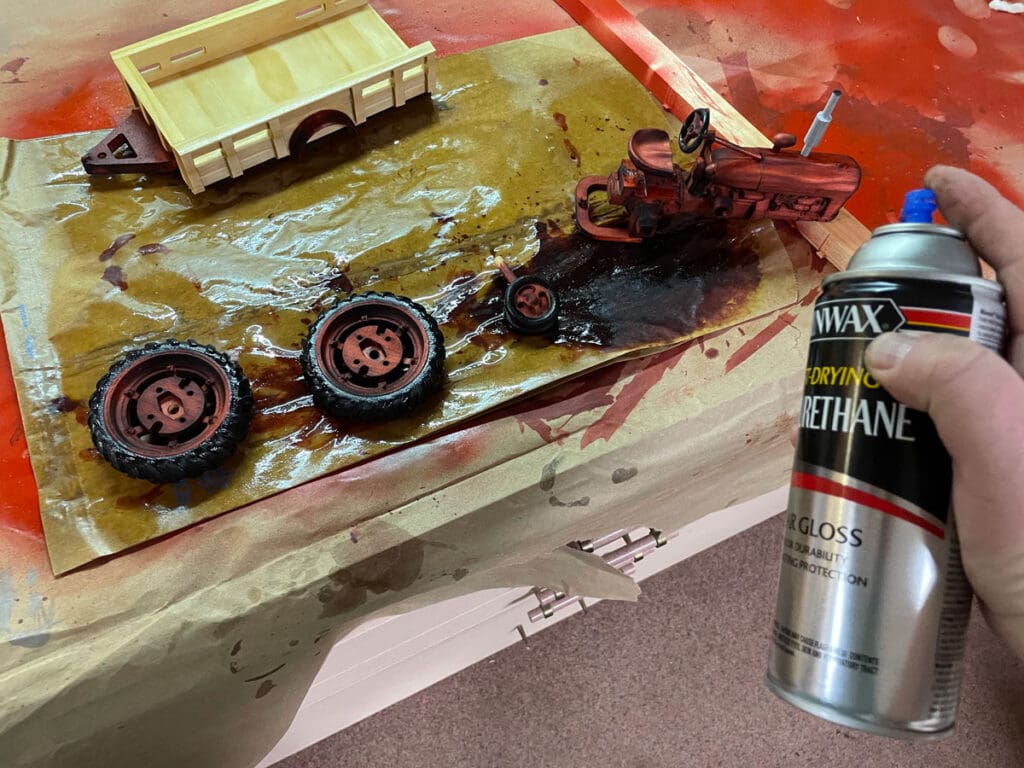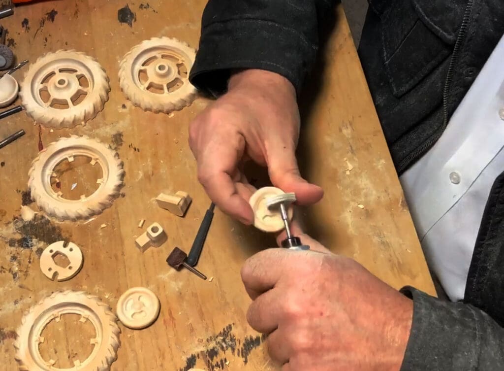 We then used paint pens to add small details such as lights and spark plug wires on the engine. After the painting was done, everything was coated in a high gloss polyurethane.