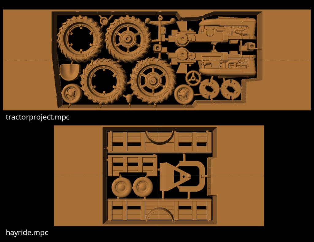 To start, suitable tractor images needed to be gathered to see the tractor from all angles. Using those images for reference, the tractor parts could be modeled. When modeling a project like this, it’s important to always be thinking about the assembly process. Create it as separate pieces like it’s a model kit. tractor parts modeling